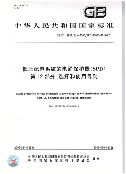 低壓配電系統(tǒng)的電涌保護器(SPD)第12部分:選擇和使用導(dǎo)則