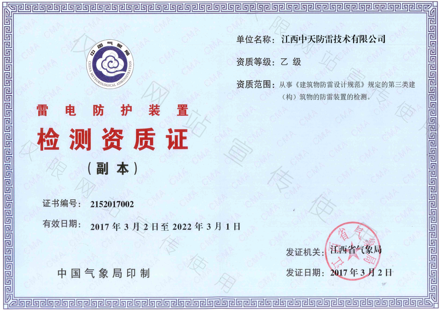 版權(quán)所有:江西南昌天鴻中光防雷工程有限公司-江西防雷,南昌防雷,防雷工程 Copyright@1998-2018 Tencent ALL Rights Reserved